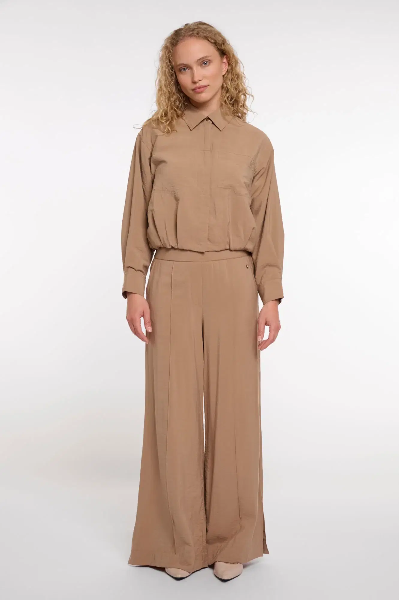 A lightweight blouson crafted from a soft, fluid fabric that drapes effortlessly for a relaxed yet refined look. Designed with a classic collar, full button closure, and elasticated hem for a slightly bloused effect, it combines ease with subtle structure. Finished with chest pockets and buttoned cuffs, it’s a versatile piece that bridges the line between blouse and jacket.