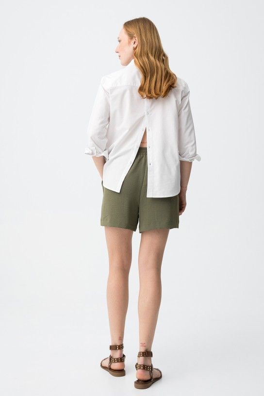 Green shorts with regular fit, elastic waist, and lightweight fabric for daily comfort.