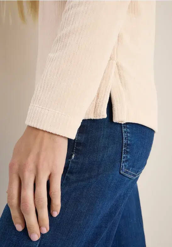 This long-sleeved hoodie from CECIL for women combines a soft corduroy fabric with functional details. A drawstring hood makes it a cozy companion for the transitional seasons. Ideal for casual, structured outfits.