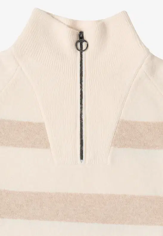 This striped Troyer sweater from CECIL for women combines sporty design with exceptional comfort. A stand-up collar with a zipper accentuates the casual style, while the cotton blend with added stretch ensures comfortable freedom of movement. Ideal for a relaxed, casual look with a fashionable edge.