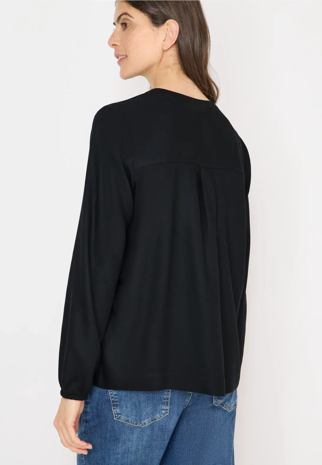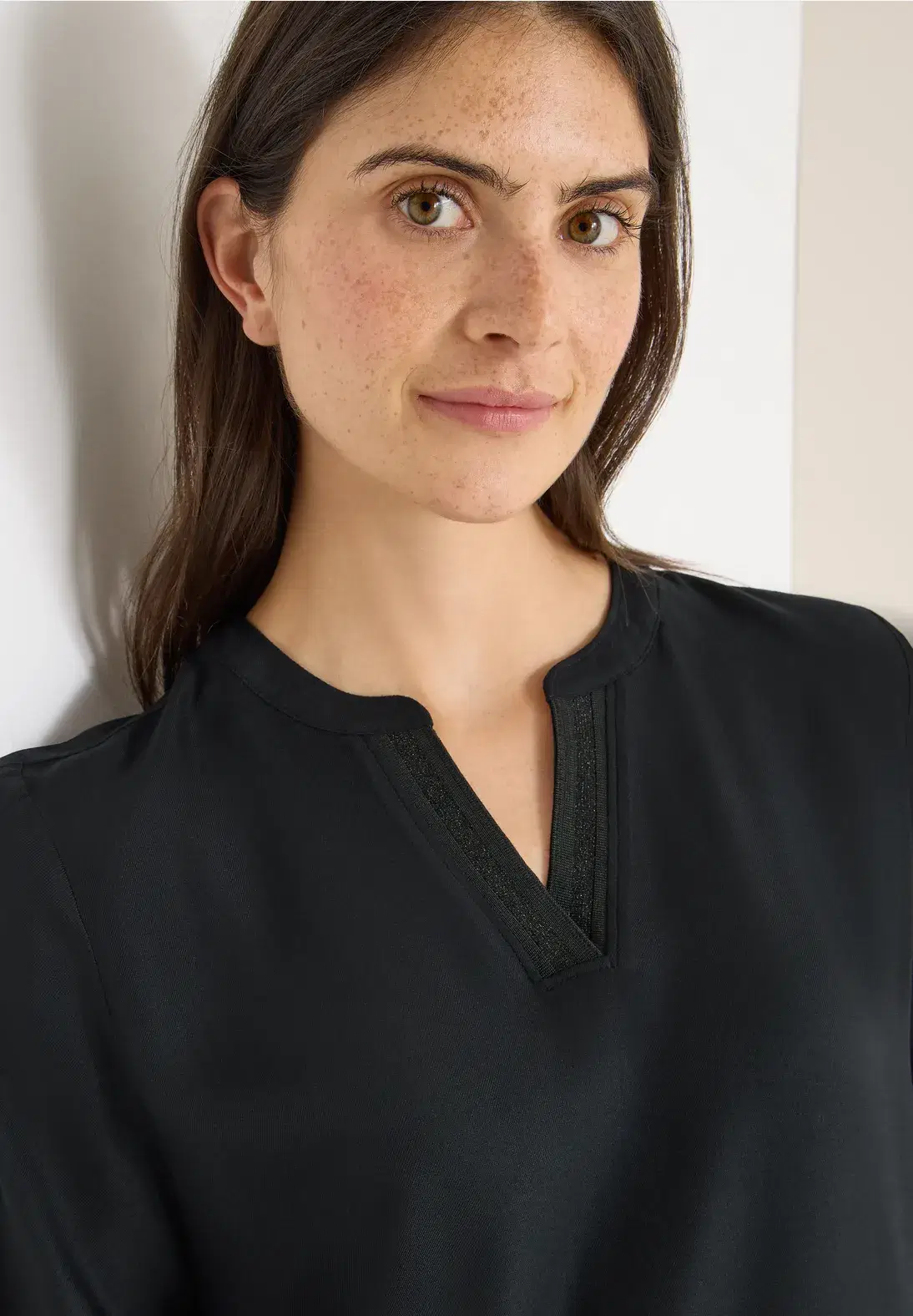 This solid-color tunic from CECIL for women features a feminine glitter detail at the split neck and is made from soft, flowing viscose. Elasticated cuffs complete the look and offer exceptional comfort. Perfect for stylish appearances with a touch of glamour.