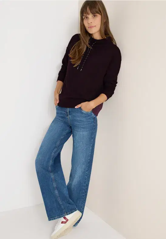 With its comfortable fit and decorative stitching, this CECIL women’s sweatshirt offers a sporty, feminine look. The funnel neck with drawstring and soft sweat fabric make it the ideal companion for relaxed days. Perfect for your feel-good look with style.