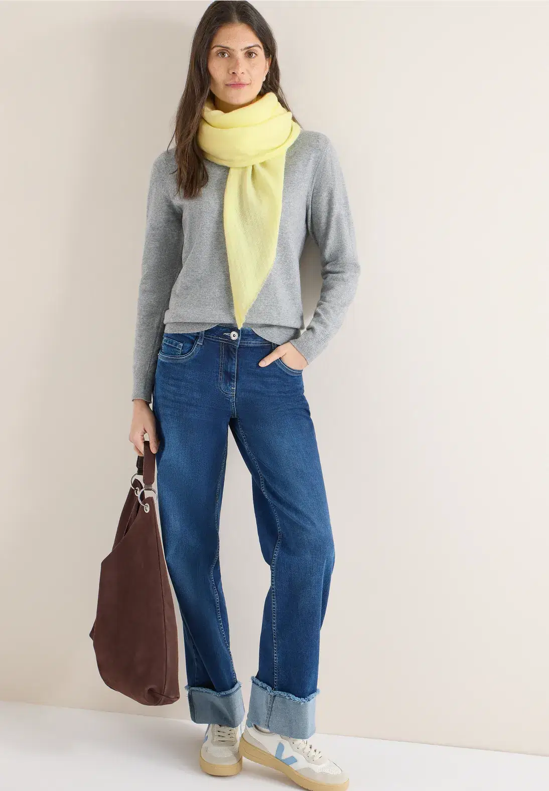 This solid-color triangular scarf from CECIL for women impresses with its delicate fringe and pleasantly soft feel. The classic design makes it versatile and a subtle accessory for various looks.