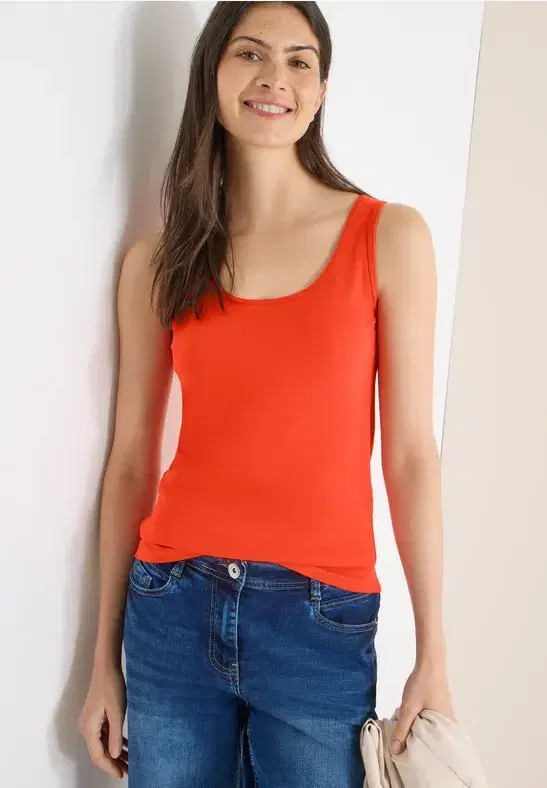 The Linda style tank top from CECIL for women is a versatile all-rounder for everyday wear. With its round neckline and sleeveless design, it’s ideal as a basic for relaxed layered looks. The pure cotton ensures a naturally comfortable feel.