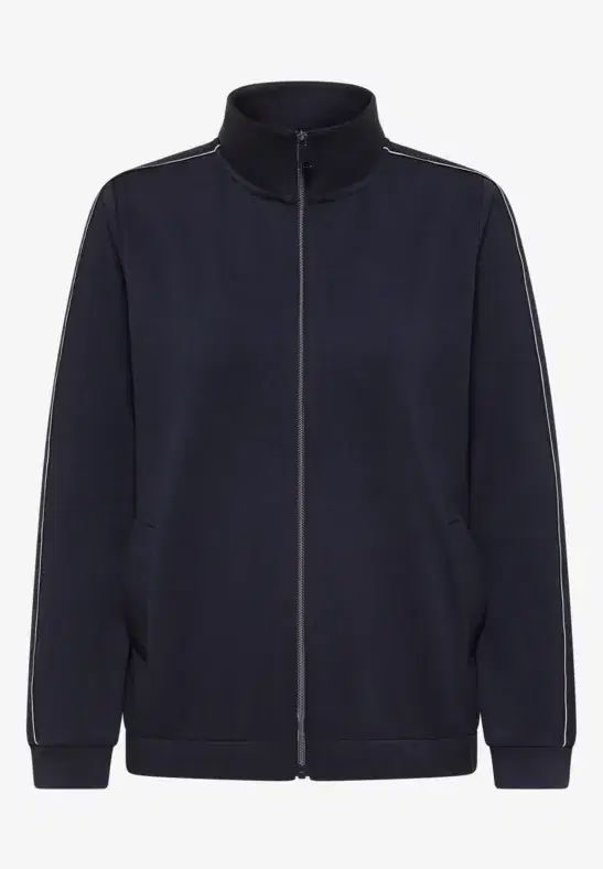 This women’s sweatshirt jacket from CECIL brings a sporty flair to your look with tape details on the sleeves and an elasticated hem. A stand-up collar and side pockets add functional functionality to the casual style. An uncomplicated everyday companion.
