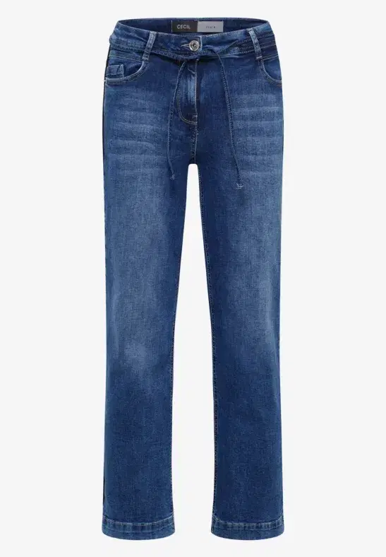 CECIL’s Neele jeans for women combine a loose fit with wide legs and a sporty piping. The high waist with drawstring ensures a comfortable fit, while the blue wash adds a classic touch. A stylish highlight for relaxed casual looks.