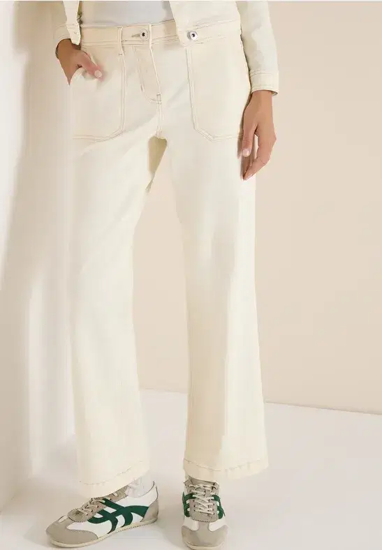 The Neele style patch pocket jeans from CECIL for women bring a relaxed silhouette to your wardrobe with their loose fit, wide legs, and high waist. The ecru wash gives the look a light and airy feel, while side pockets add practicality. Thanks to the soft cotton blend with added stretch, they are exceptionally comfortable to wear.