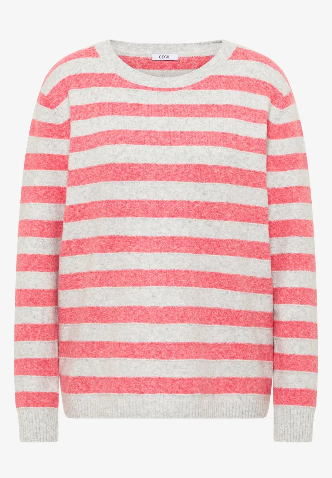 This striped melange sweater from CECIL for women combines a vibrant striped pattern with a soft cotton blend and a comfortable crew neck. The melange effect adds a modern touch. A versatile piece for relaxed and stylish outfits.