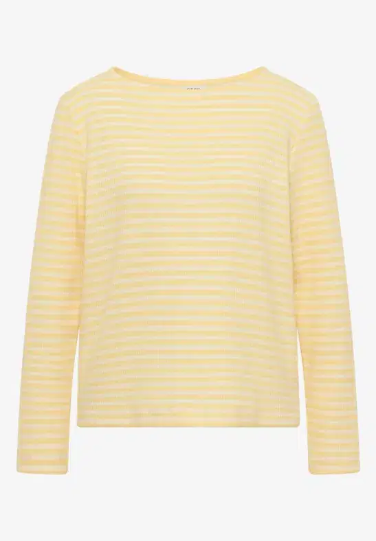 This striped women’s topĀ  from CECIL, with its subtle melange look, impresses with its comfortable viscose blend and added stretch. The boat neck and relaxed fit make it the perfect everyday basic. A versatile favourite for your casual style.
