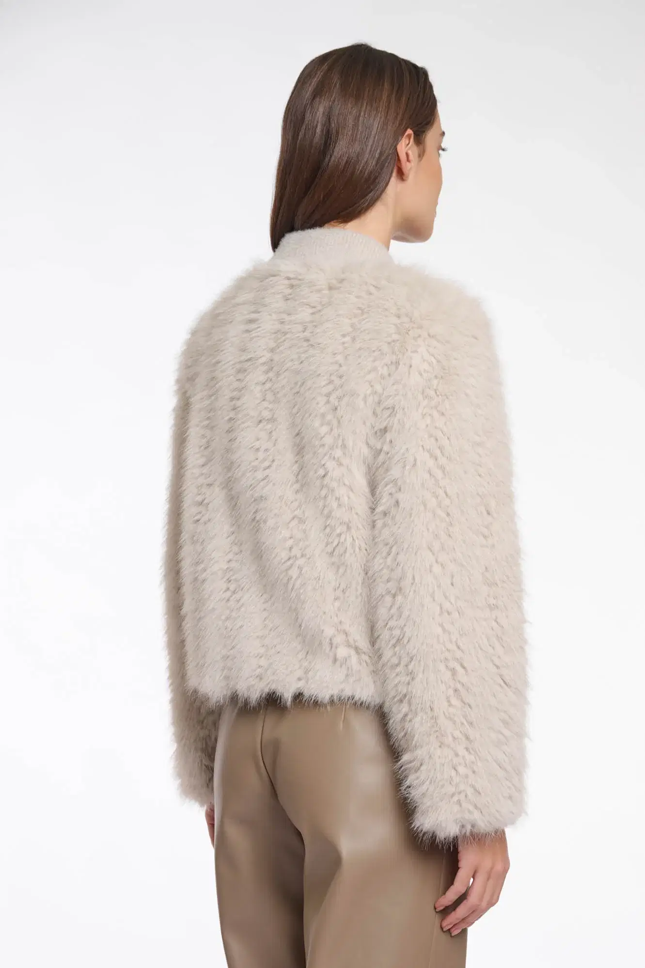 Indulge in ultimate cozy chic with the Chaimae cardigan. This stylish cardigan features a luxuriously fluffy, faux-fur body paired with a contrasting knitted middle front. Complete with side slit pockets for practicality and a classic button closure. Stay warm and on-trend all season long.