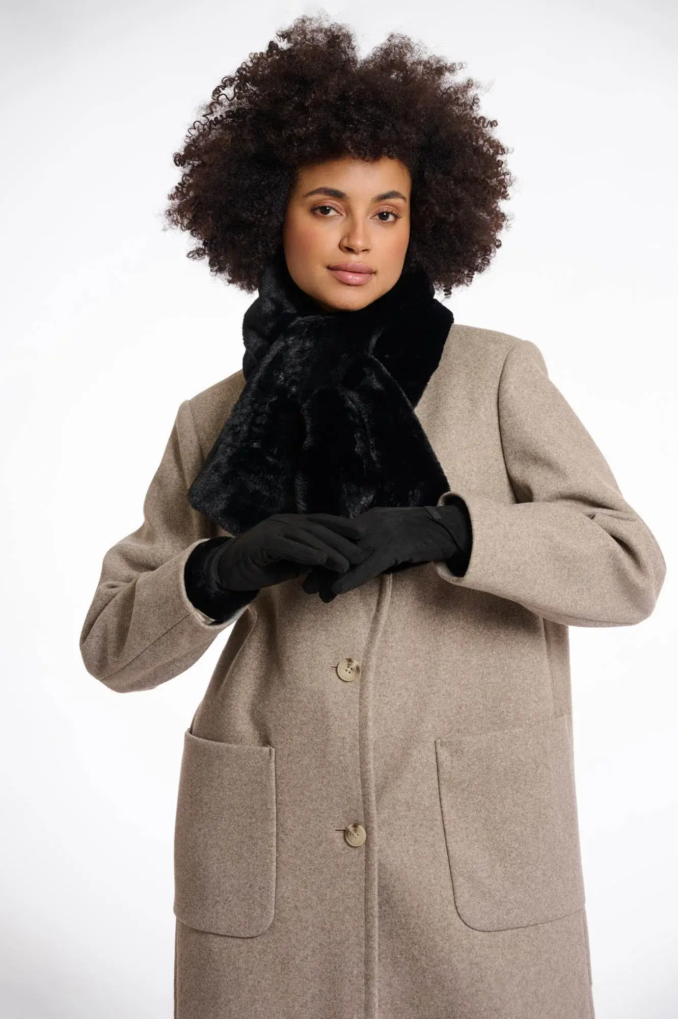 Super soft and cozy gloves with a faux-fur top side. These gloves show a visible seam and and can complement all your coats and jackets.