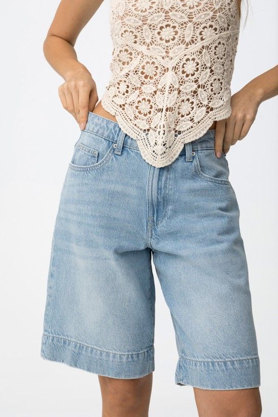 Previous Product Next Product Doja Denim Bermuda Shorts €40.00 Size Choose an option44363840424436384042Clear Doja Denim Bermuda Shorts quantity Add to basket SKU: 10065199 Categories: Bottoms, Brands, Clothing, NEW IN, Shorts, Tiffosi Tags: Denim Shorts, Tiffosi Size Chart Women's Jeans Sizes Waist : Measure around your natural waistline,keeping the tape bit loose. Hips : Measure around the fullest part of your body at the top of your leg. Inseam : Wearing pants that fit well, measure from the crotch seam to the bottom of the leg. SizeWaistHip242435252536262637272738282839292940303041313142323243333344343445 Size Chart Women's Sizes Chest : Measure around the fullest part of the bust, keeping the tape parallel to the floor. Waist : Measure around the narrowest point, keeping the tape parallel to the floor. Hip : Stand with feet together and measure around the fullest point of the hip, keep the tape parallel to the floor. Inseam : Measure inside length of leg from your crotch to the bottom of ankle. UK SIZEBUSTBUSTWAISTWAISTHIPSHIPSN/AINCHESCMINCHESCMINCHESCM4317824603383.563280.52562.534868338326653588.510358828703793.512379330753998.5143998318041103.51641103338543108.51844110.53692.546116 Description Additional information Description Loose fit denim shorts in light blue, five pockets, button fastening and belt loops at the waist. Additional information Size 44, 36, 38, 40, 42 Material Composition 100% Cotton Related products Quick View Sale! Quick View Bellflower Wide Leg Jeans €120.00 Original price was: €120.00.€60.00Current price is: €60.00. Select options This product has multiple variants. The options may be chosen on the product page Quick View Sale! Quick View Stefani Denim Skirt €40.00 Original price was: €40.00.€20.00Current price is: €20.00. Select options This product has multiple variants. The options may be chosen on the product page Quick View Sale! Quick View Nuwendie Trousers €89.99 Original price was: €89.99.€30.00Current price is: €30.00. Select options This product has multiple variants. The options may be chosen on the product page