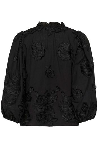 Blouse with voluminous 3/4 sleeves and tactile all-over floral embroidery. Detailed with a soft ruffled V-neckline and straight, slightly boxy silhouette.