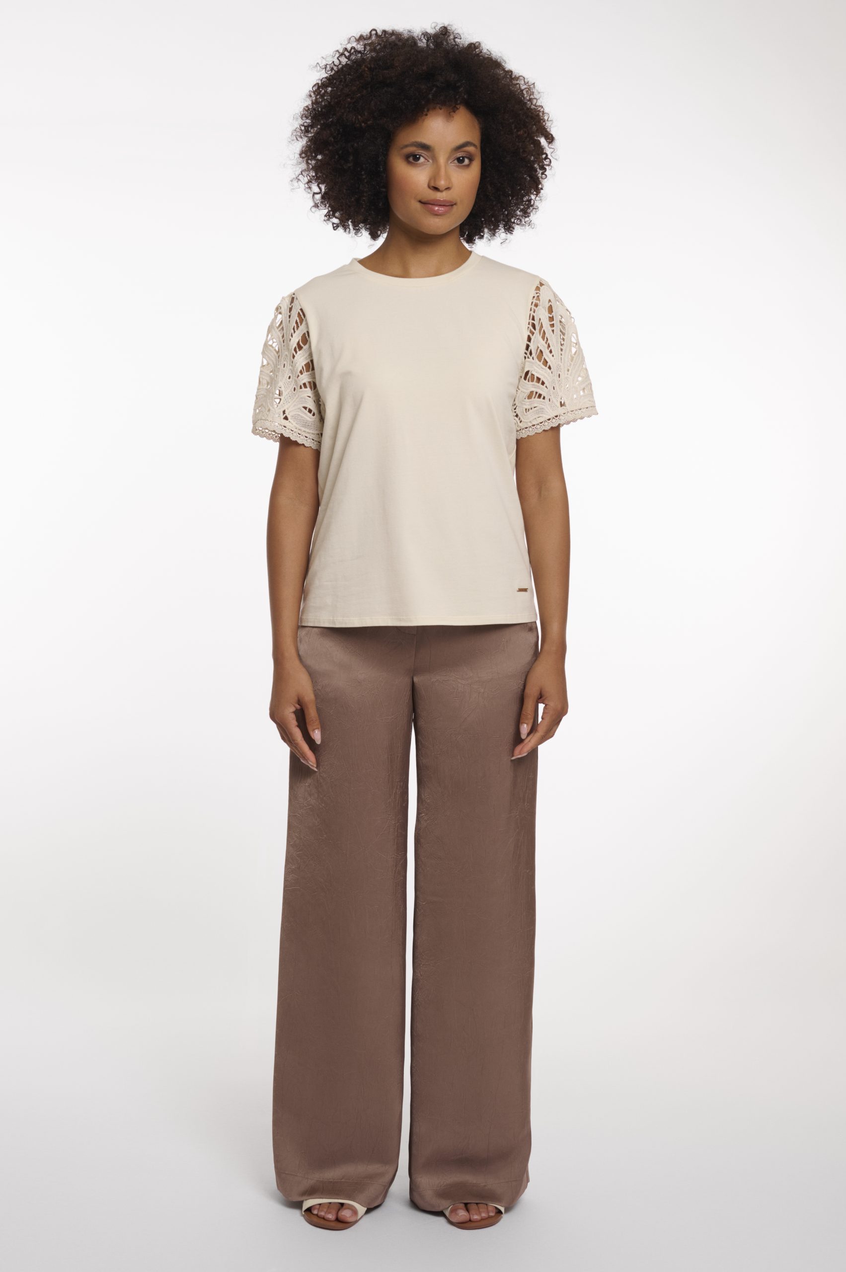 Wrap yourself in effortless elegance with this airy, softly draping top, designed with a relaxed silhouette and a low round neckline. The fluid fabric and delicate short sleeves create an easy, comfortable fit that feels smooth against the skin. Clean trims and subtle finishing details complete the minimal, wearable design.