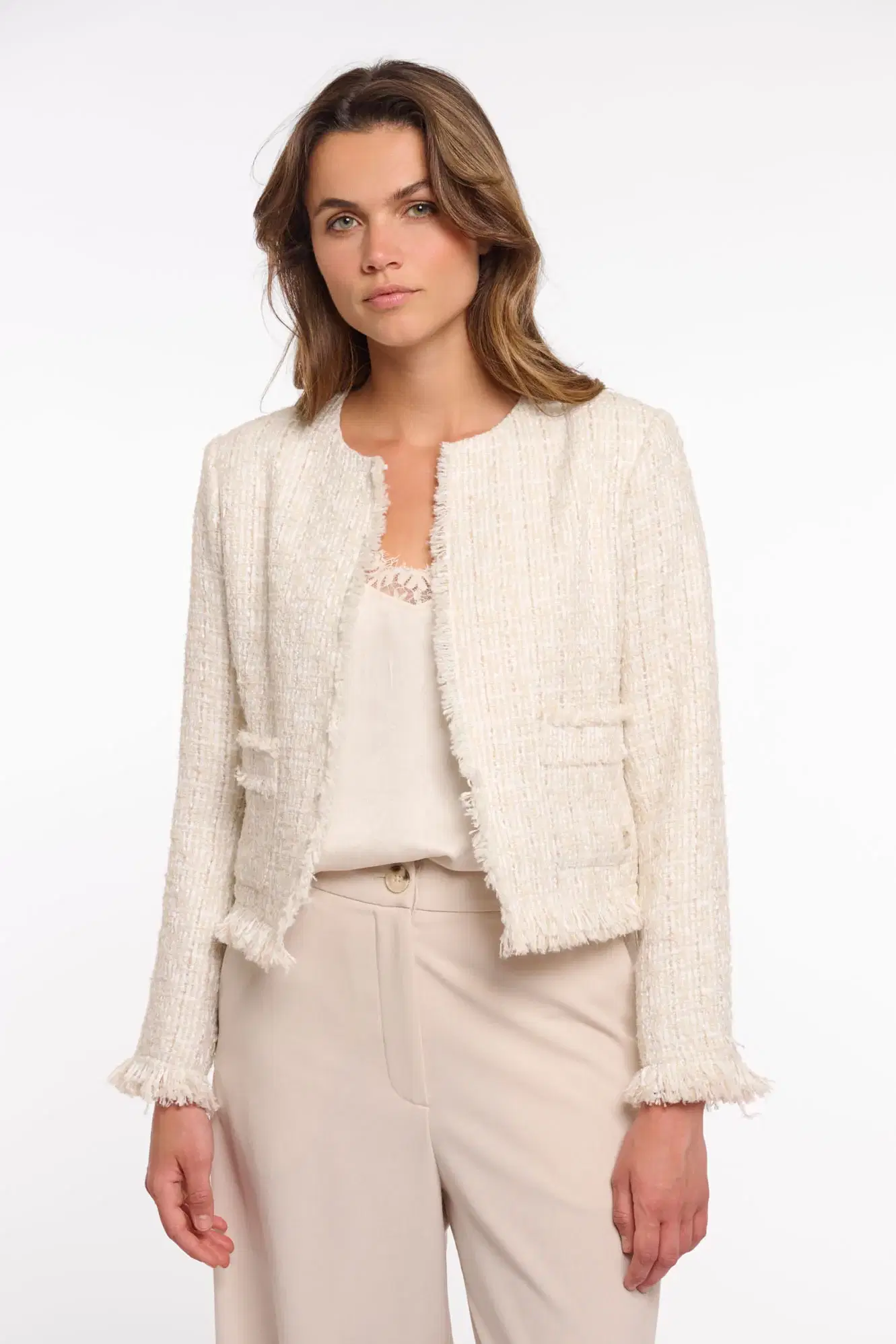 Step into modern sophistication with this cropped bomber jacket, designed with a rounded collar, tonal button closure, and softly structured silhouette. Large patch pockets at the chest add a clean, contemporary touch, while the elasticated hem creates a subtle, flattering puff effect at the back. Reinforced cuffs complete the look, giving the piece its modern bomber character.
