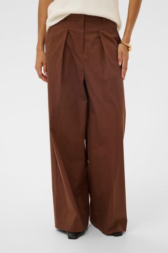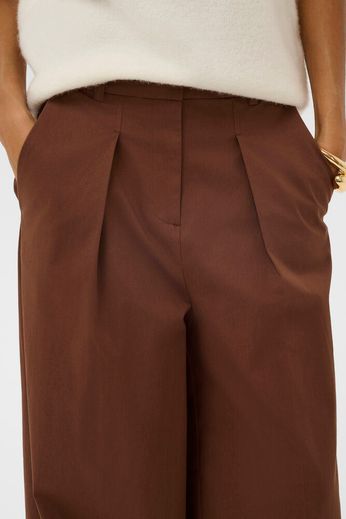 These cappuccino trousers feature wide legs and front pleats for a refined yet relaxed silhouette. The high waist and structured cotton fabric offer a clean and contemporary finis