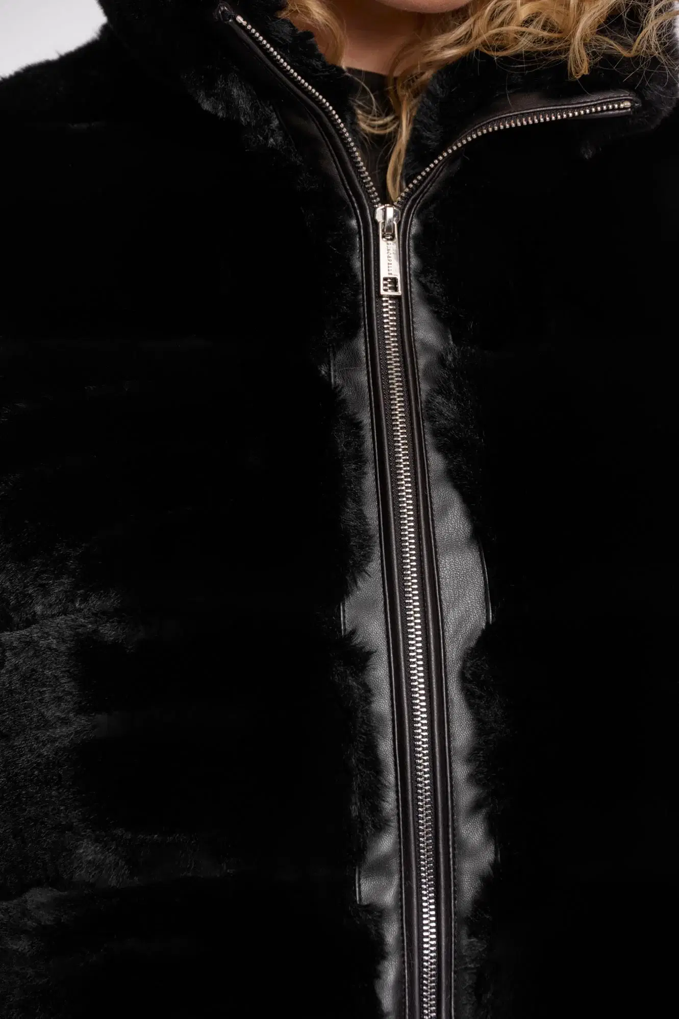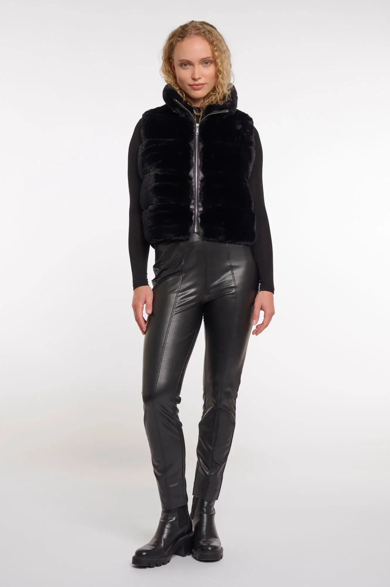 Step out in style with this chic, short waistcoat. Crafted from soft, touchable faux-fur and faux leather details. This waistcoat features a sleek zipper closure, practical side slit pockets, and a stand-up collar.
