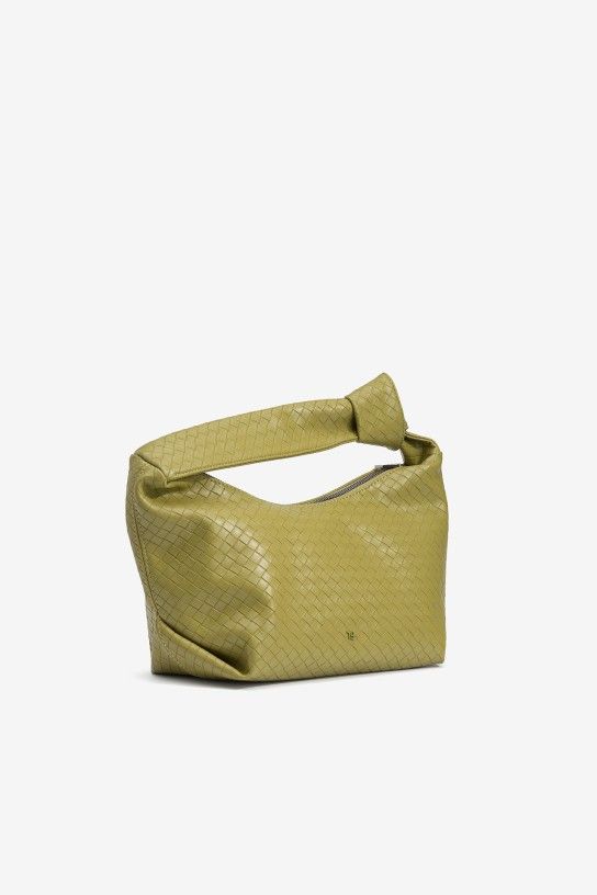Trendy green bag with woven pattern, zip closure, and wide strap for a chic look.