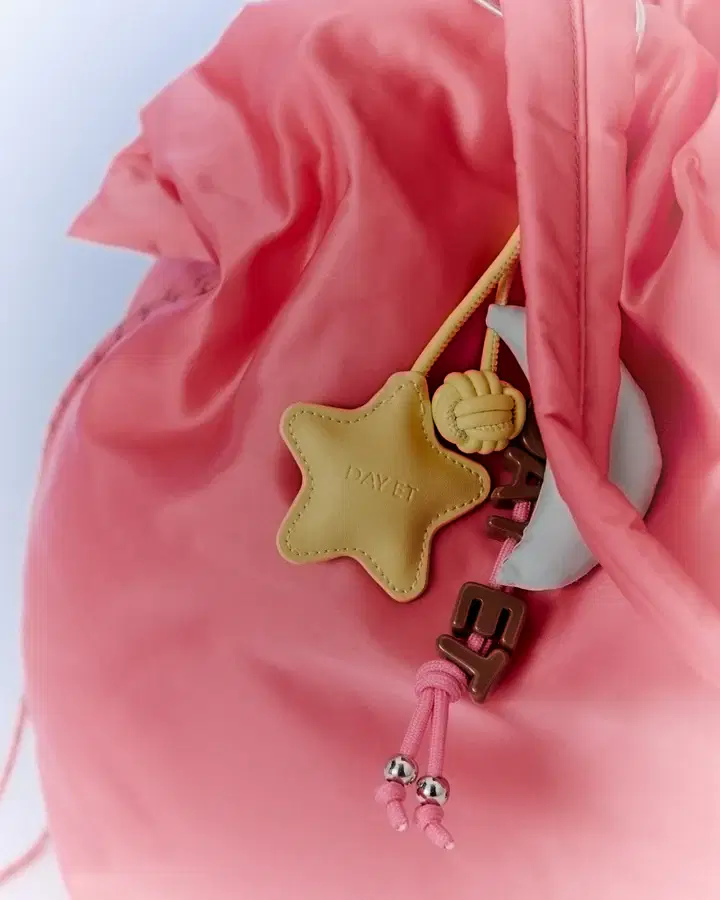 This charm with moon and star pendants attached to a carabiner clip creates a unique and decorative look. Use it on your bag or as a key ring to add a poetic and personal touch.