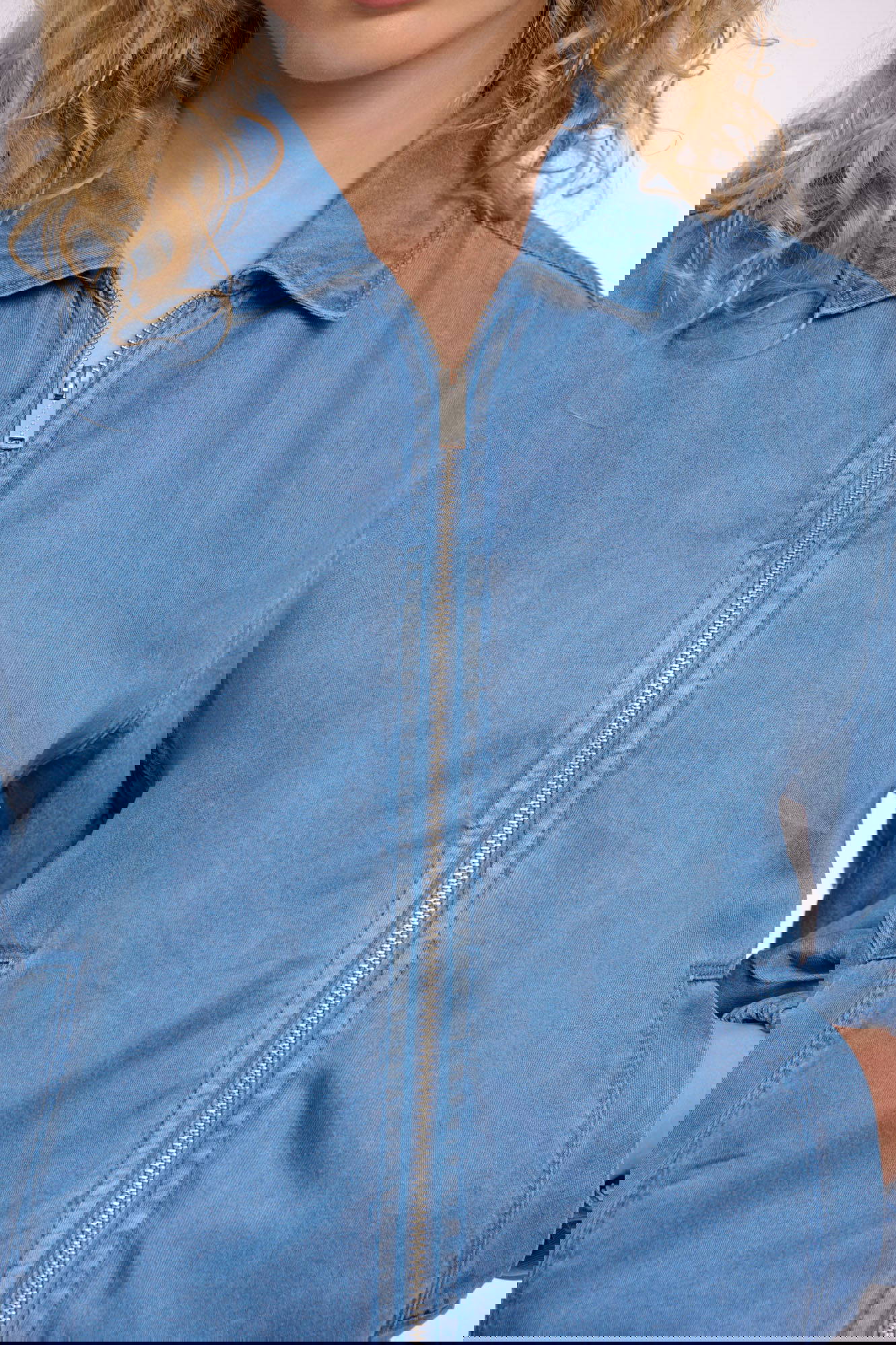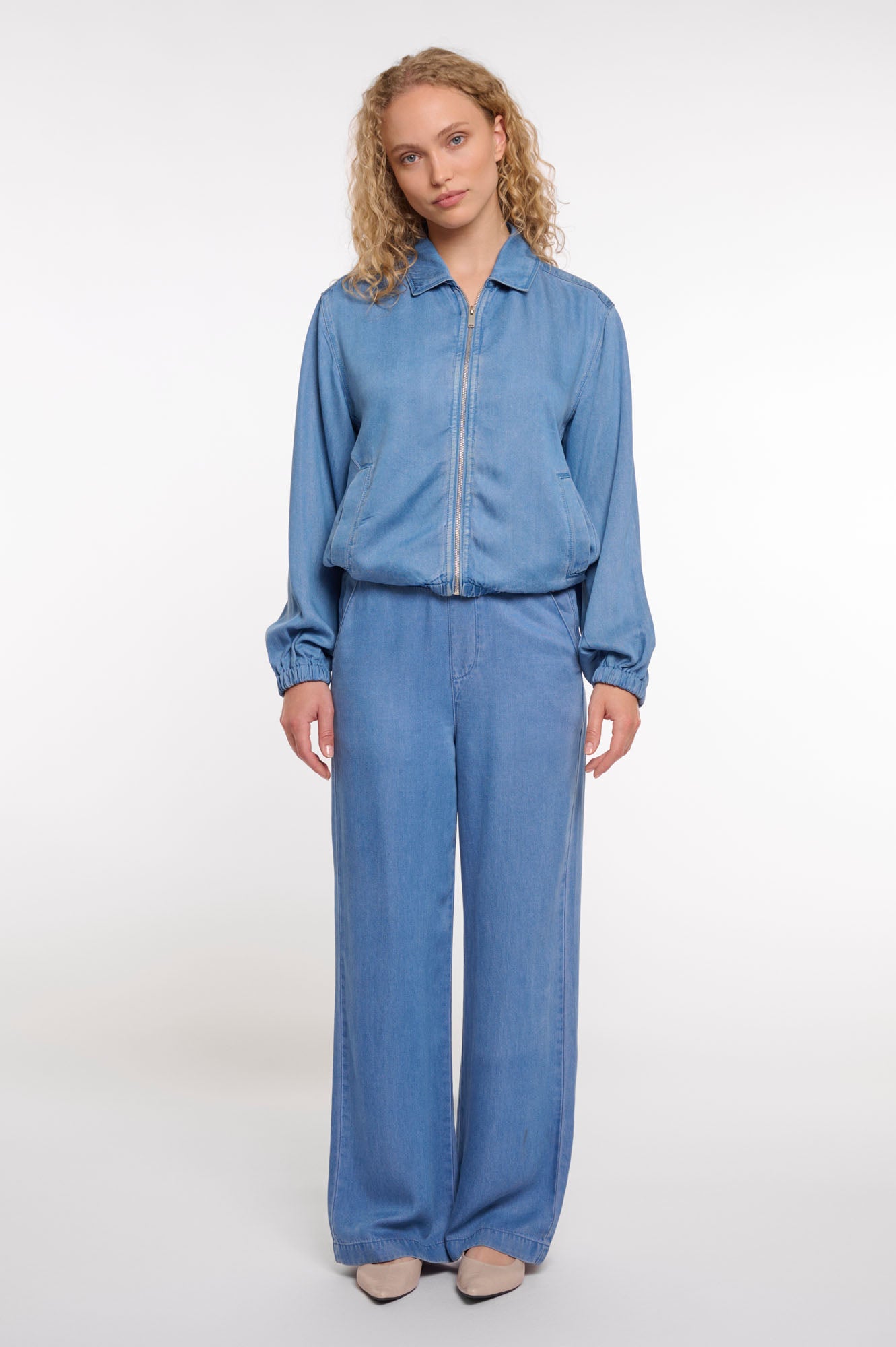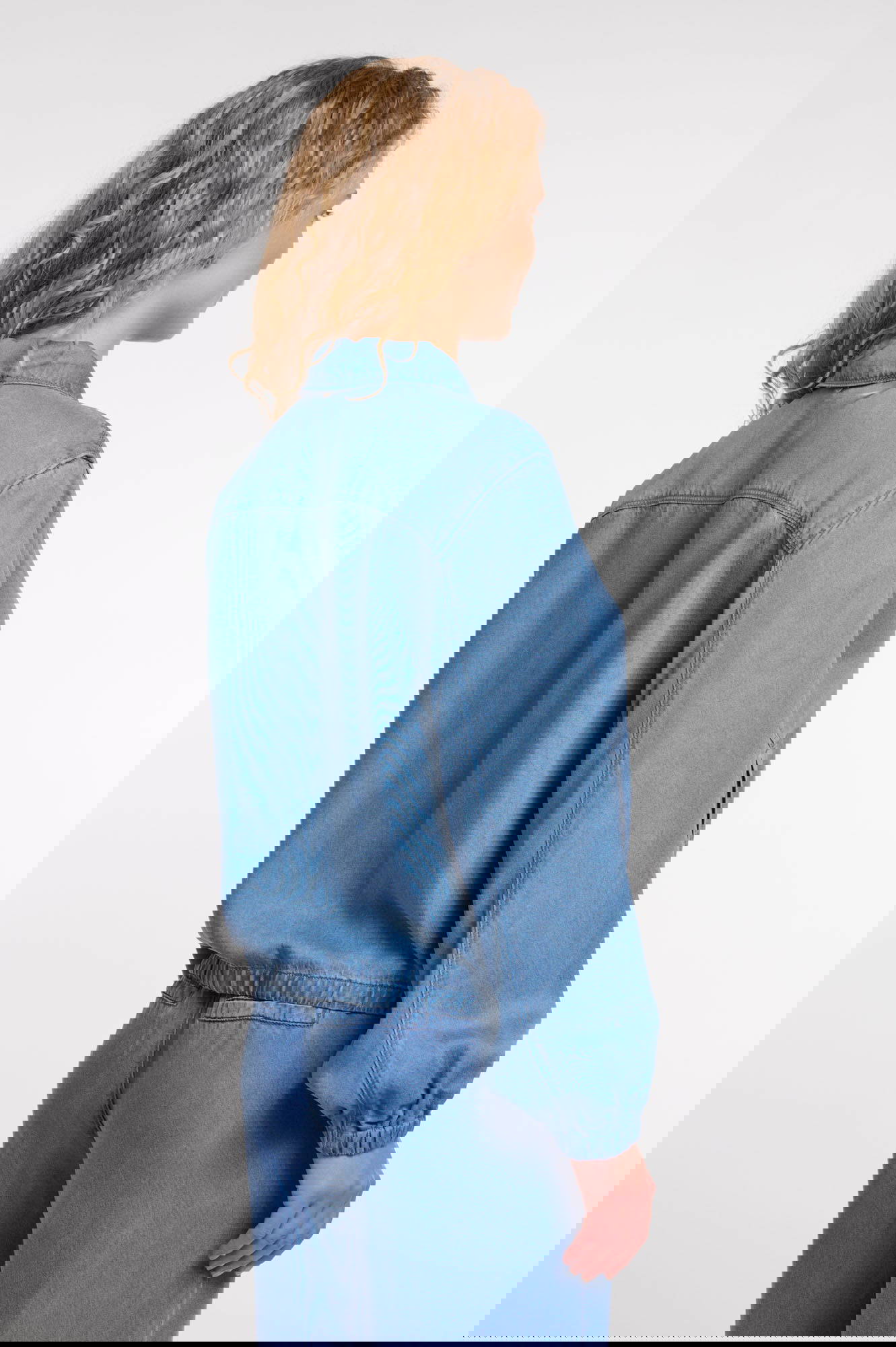 Feel effortlessly refined in this zipper jacket, crafted from a soft, denim-look lyocell blend for a fluid and modern feel. Designed with a relaxed fit, elasticated hem and cuffs, and subtly voluminous sleeves, it offers both comfort and contemporary style. Finished with a classic collar and front welt pockets.