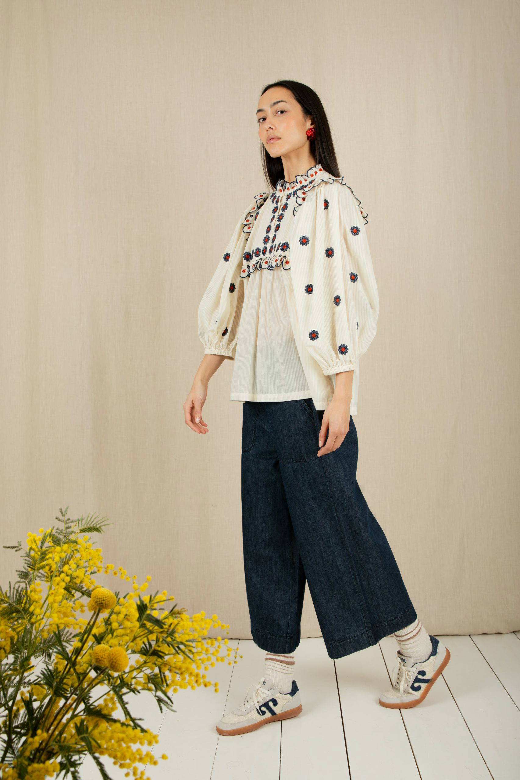 A floaty, swing-style top with an empire waist detail + a voluminous 3/4 sleeve with an elasticated cuff + a low armhole.